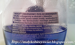 Działanie : Płyn bardzo dobrze zmywa makijaż. Radzi sobie idealnie nawet z wodoodpornymi kosmetykami. Nie pozostawia tłustego filmu na skórze. Skóra jest po nim nawilżona, nie ściąga się. Gdyby nie to że jednak wole mleczka, myślę że był by w Mojej czołówce specyfików do demakijażu.