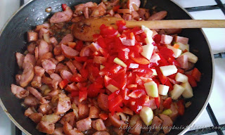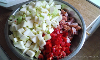 Nie wiem czy już pisałam o tej sałatce czy nie, ale należy ona do czołowych dań w Mojej kuchni. Idealna na imieniny czy też na obiad. Można ją podawać na zimno i na ciepło. Dla każdego coś dobrego :)