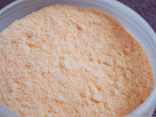 Konsystencja : Pomarańczowy proszek. Część z was pewnie pamiętam z czasów młodości oranżadki w proszku. Po odkręceniu wieczka od opakowania,naszym oczom pojawia się taki własnie proszek, łudząco przypominający oranżadki. Łyżeczkę pomarańczowego proszku dodajemy do ciepłej wody, i w tak przygotowanym wywarze moczymy nasze dłonie.
