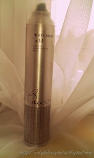 Do testów otrzymałam mocno utrwalający lakier do włosów. Jako że mam długie włosy zmagam się z ich niesfornością. Szczególnie oporną jest grzywka :)
