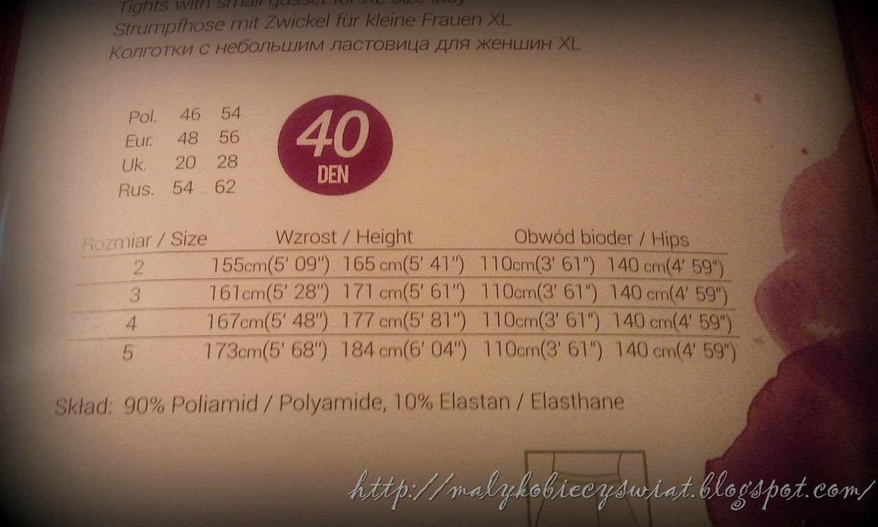 Jeśli chodzi o rozmiary są one nieco inne niż w standardowych rajstopach, dlatego przed zakupem warto się jej przyjrzeć.